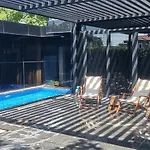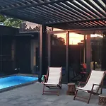 Black Box Village With Garden距离提奥斯古城2.5公里,设有5间游泳池景的卧室。 别墅设有露台。